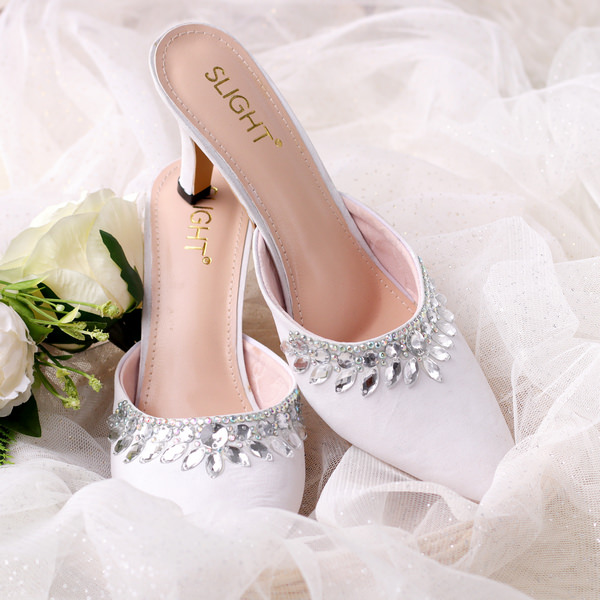 Desain dari Sandal Selop Adore Silver ini terinspirasi dari keindahan susunan aplikasi permata pada perhiasan.