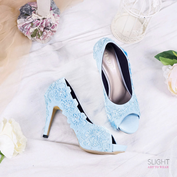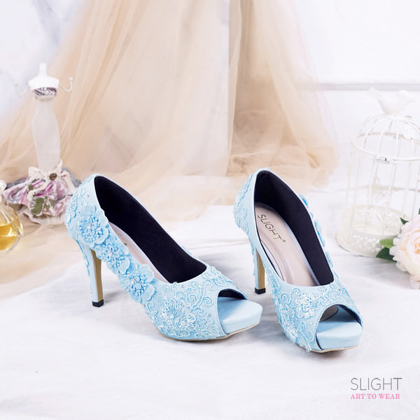 Desain dari Sepatu Peeptoe Cecilia Biru ini terinspirasi dari keelokan buket bunga yang indah. Model sepatunya elegan dan mewah.