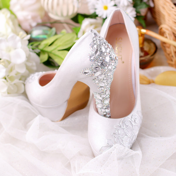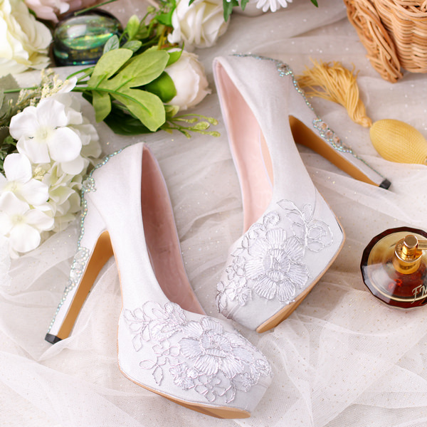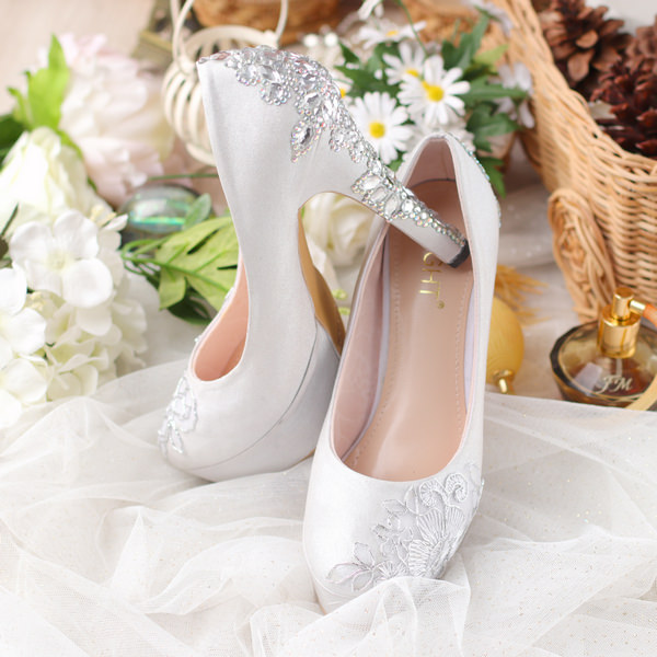 Desain dari Sepatu Platform Luminous Silver ini terinspirasi dari keindahan susunan aplikasi permata pada perhiasan.