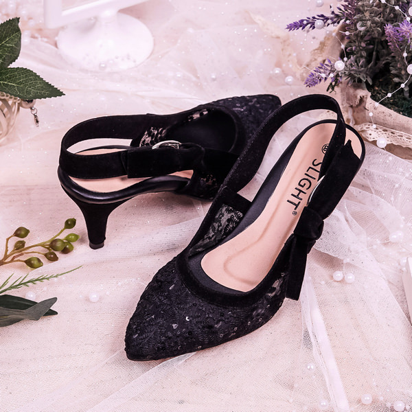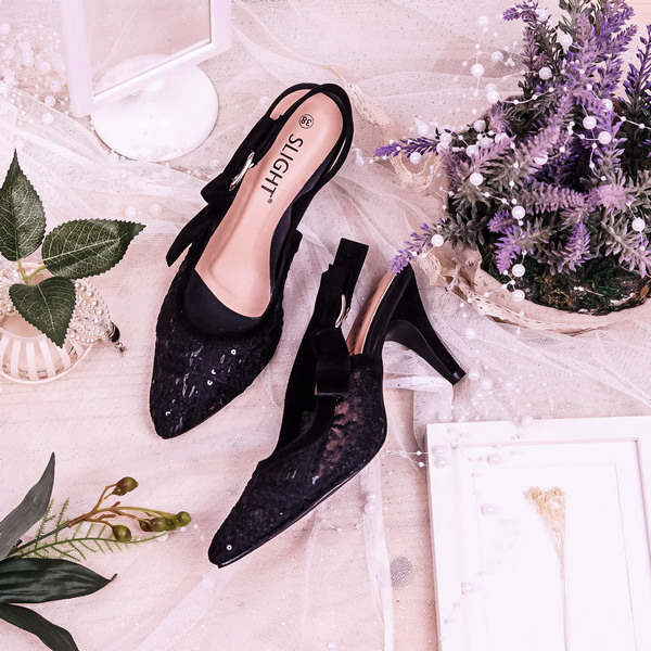 Desain dari Sepatu Slingback Lacie Hitam ini terbuat dari kain brukat transparan dengan motif yang simple namun tetap cantik,
