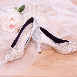 Rp668.000Rp387.440Sepatu Pointed Crystal Brukat Krem